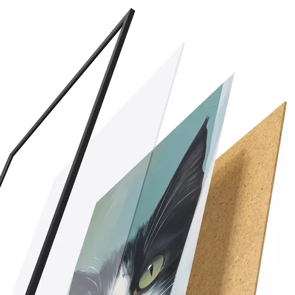 Plakat koosneb raamist, pleksiklaasist, trükitud pildist ja puitlaastplaadist alusplaadist. Tänu tagaküljel olevatele kinnitustele saab plakati kohe seinale riputada.