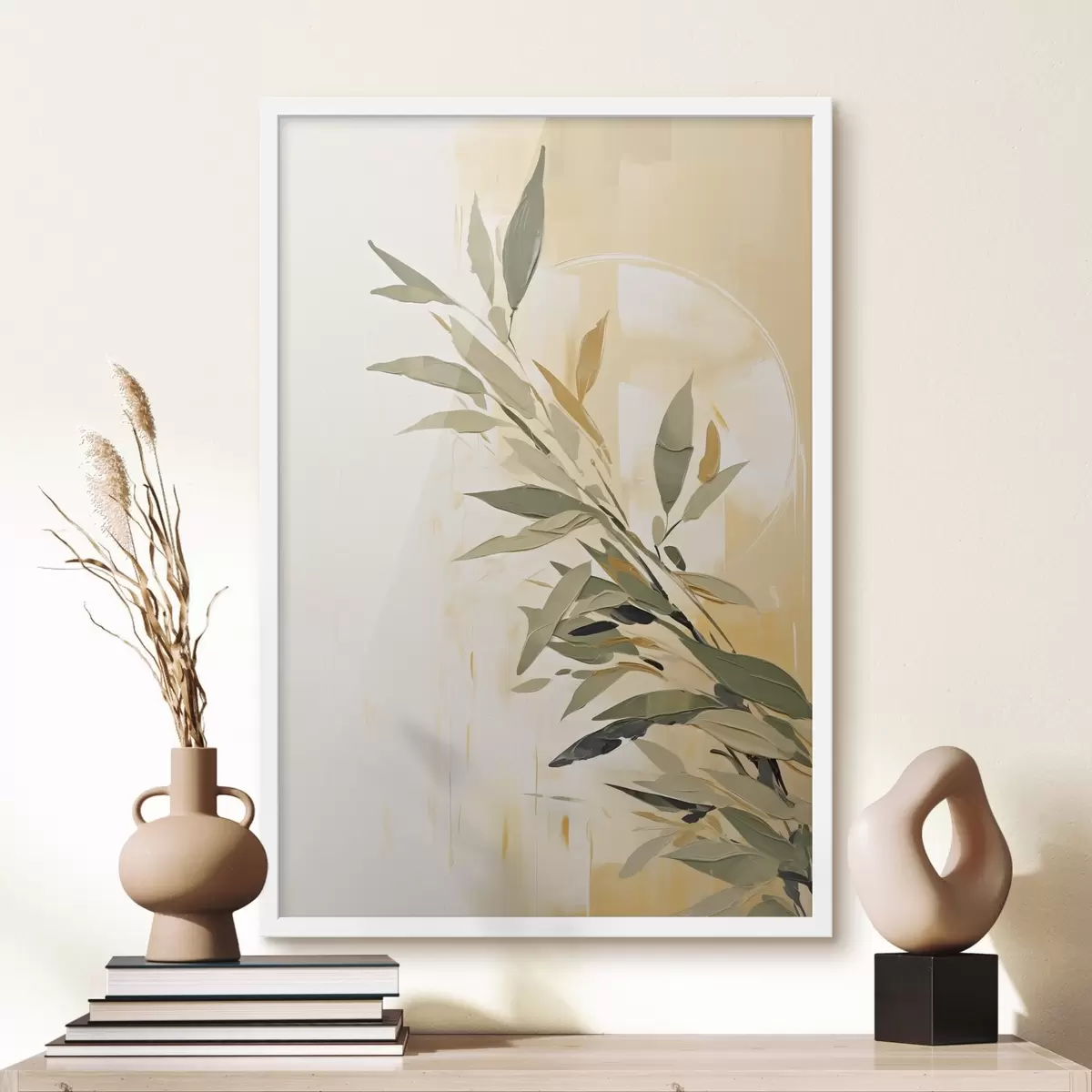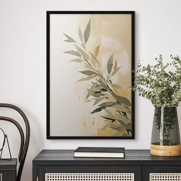 Poster Roheliste lehtedega botaaniline haru soojal taustal Nr f45690