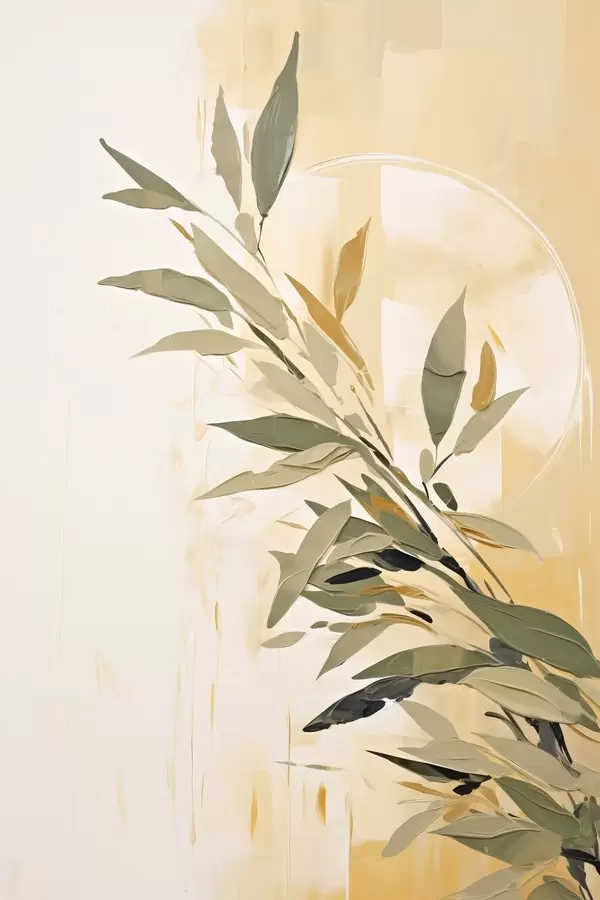 Poster Roheliste lehtedega botaaniline haru soojal taustal Nr f45690