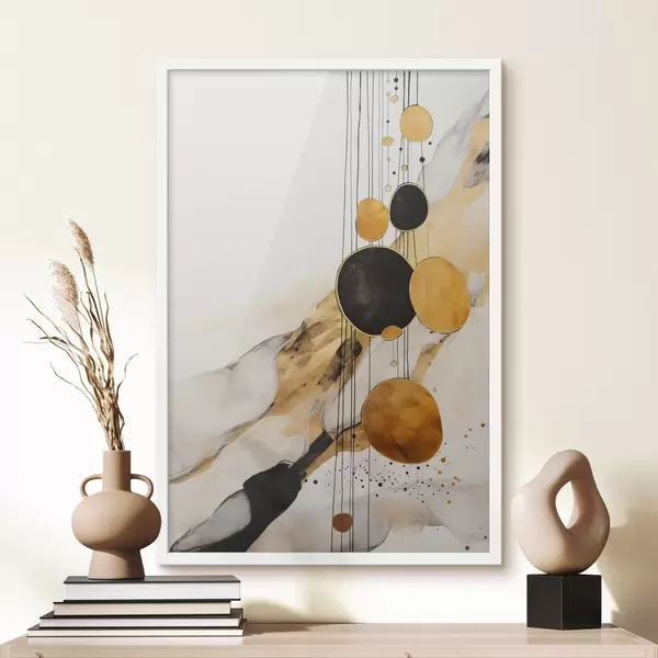 Plakat Abstraktsed oranžid ja mustad ringid heledal taustal f45693