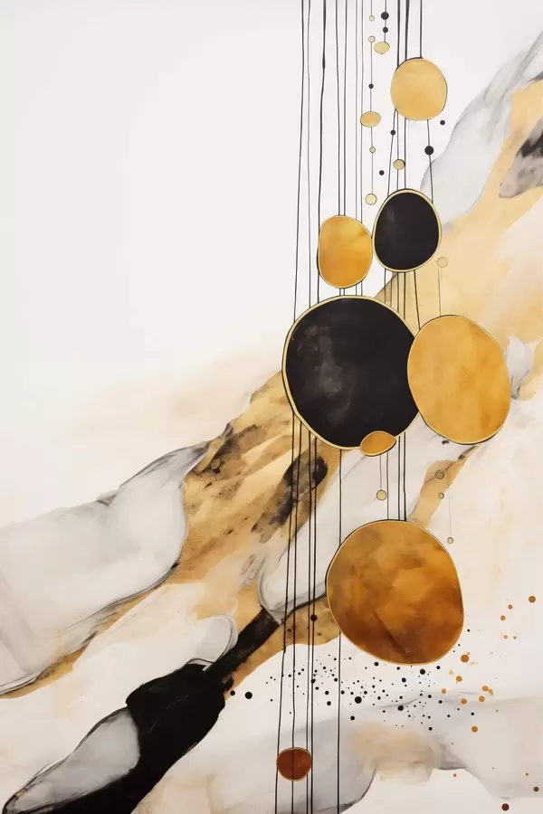 Poster Abstraktsed oranžid ja mustad ringid heledal taustal Nr f45693