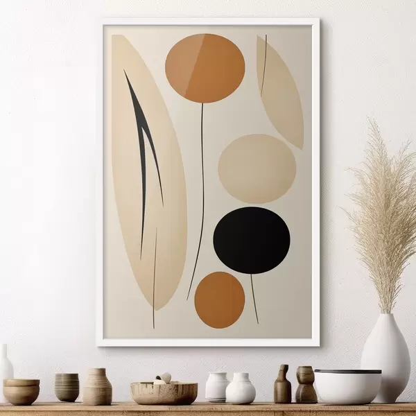 Poster Abstraktne kompositsioon mustade ja oranžide ringidega Nr f45700