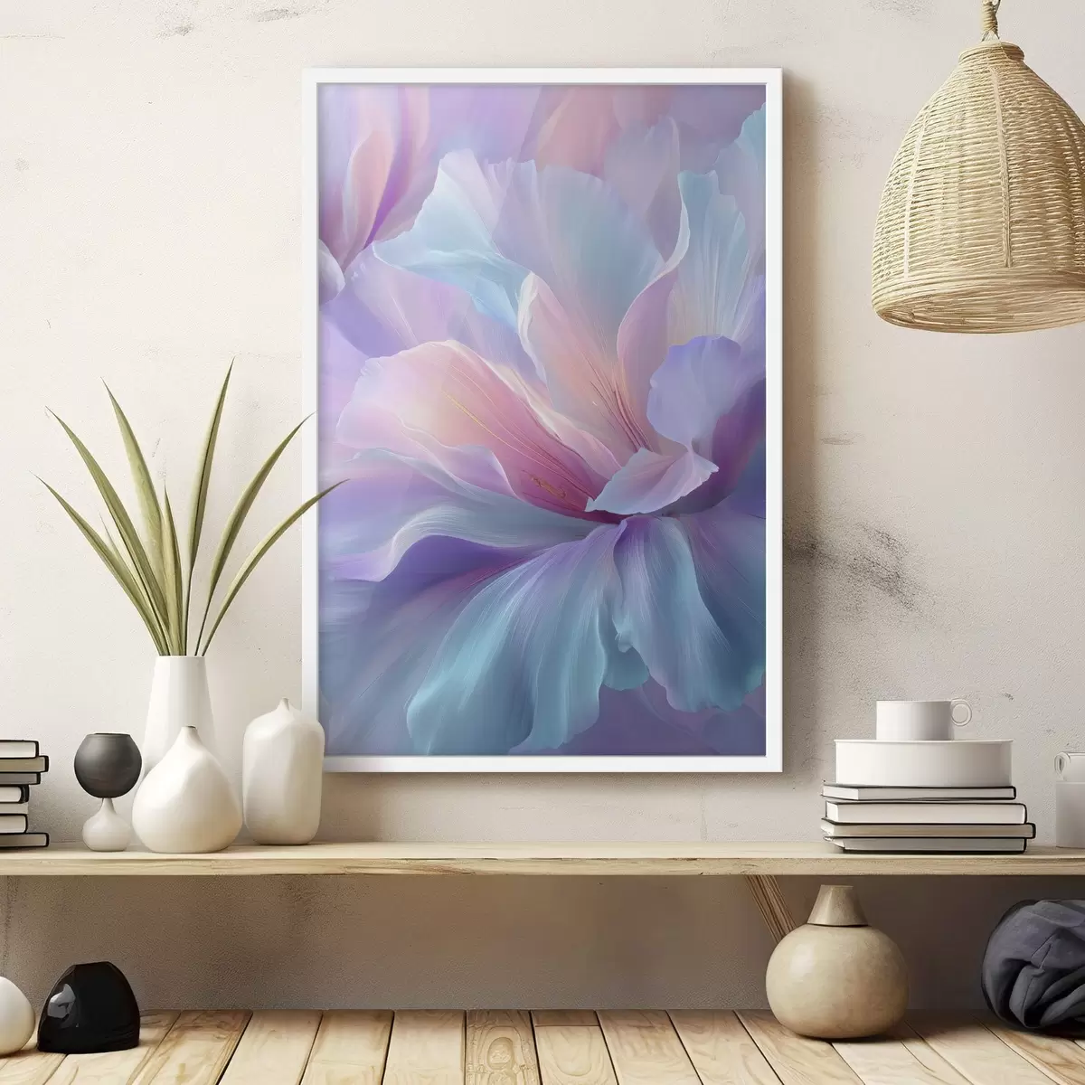 Plakat õrn fantaasiaküünal, mille kroonlehed on lilla, sinise ja roosa toonides. f45710