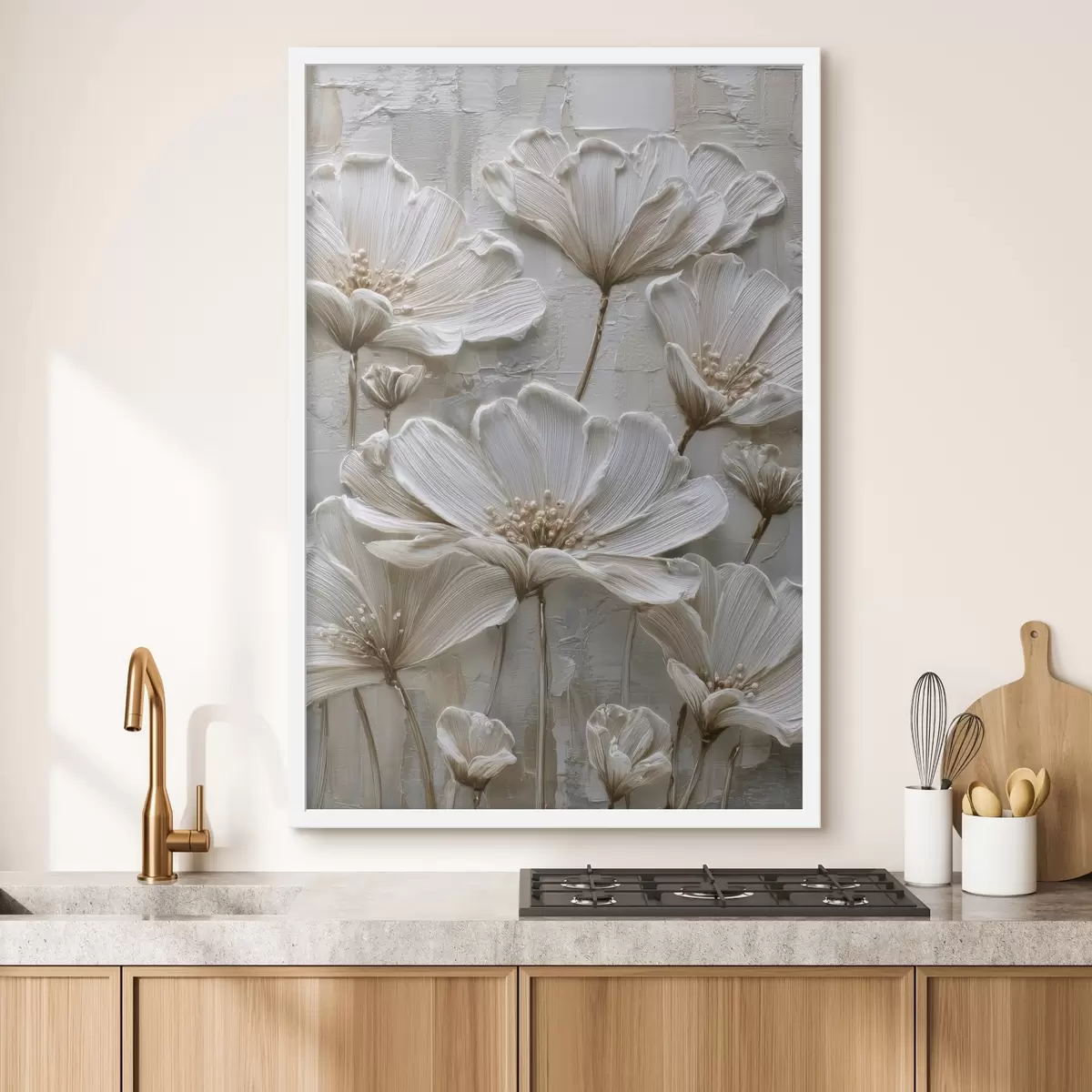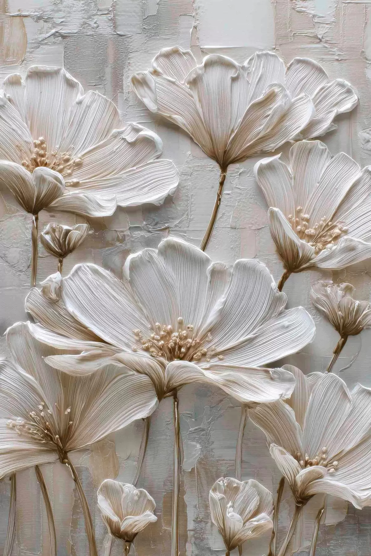 Poster kreemikarva lilled imitatsiooniga impasto stiilis Nr f45713