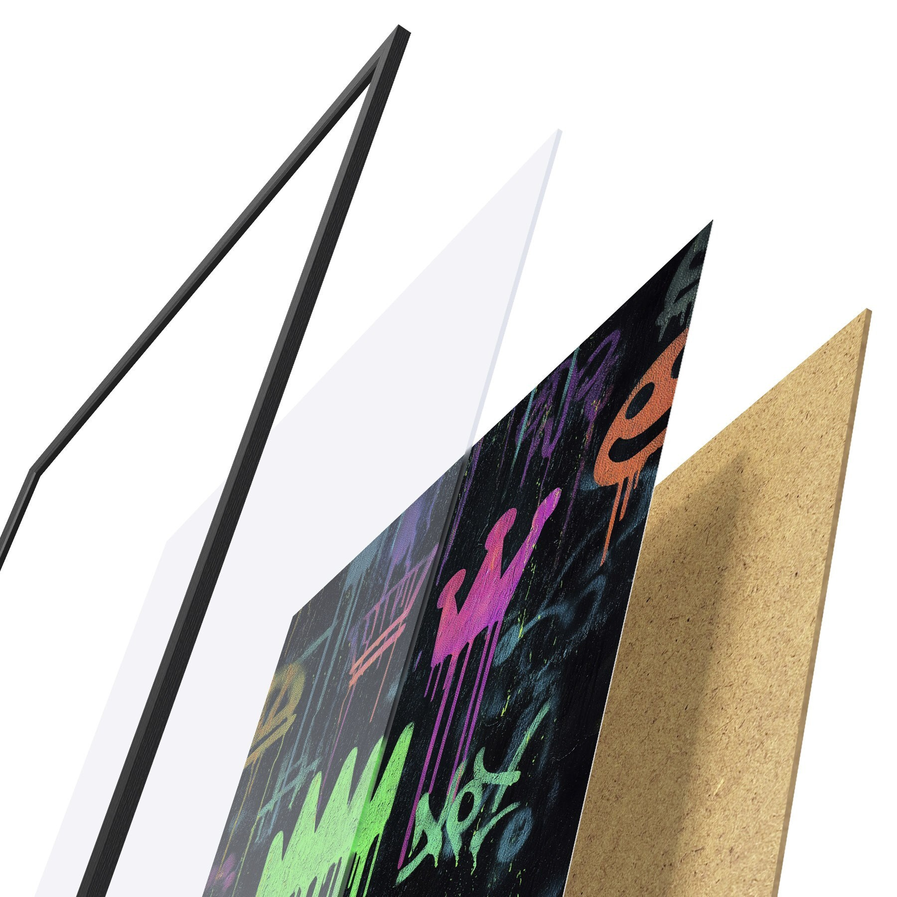 Plakat koosneb raamist, pleksiklaasist, trükitud pildist ja puitlaastplaadist alusplaadist. Tänu tagaküljel olevatele kinnitustele saab plakati kohe seinale riputada.