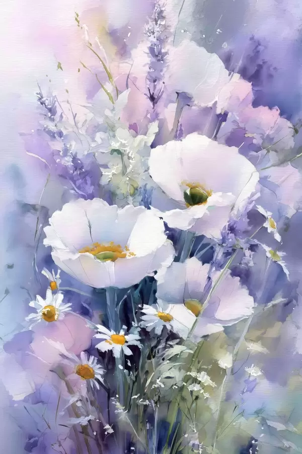 Plakat lilla ja valge toonides akvarellikimpp f45720