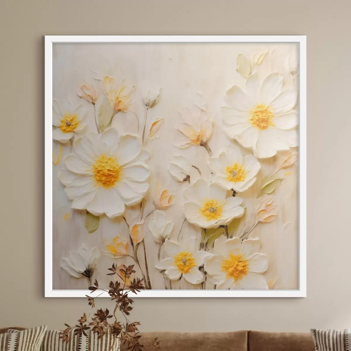 Me müüme pilte kanderaamidel - see on puidust raam, millele lõuend on pingutatud. Seda pilti ei ole vaja raamida, seda võib riputada otse seinale.