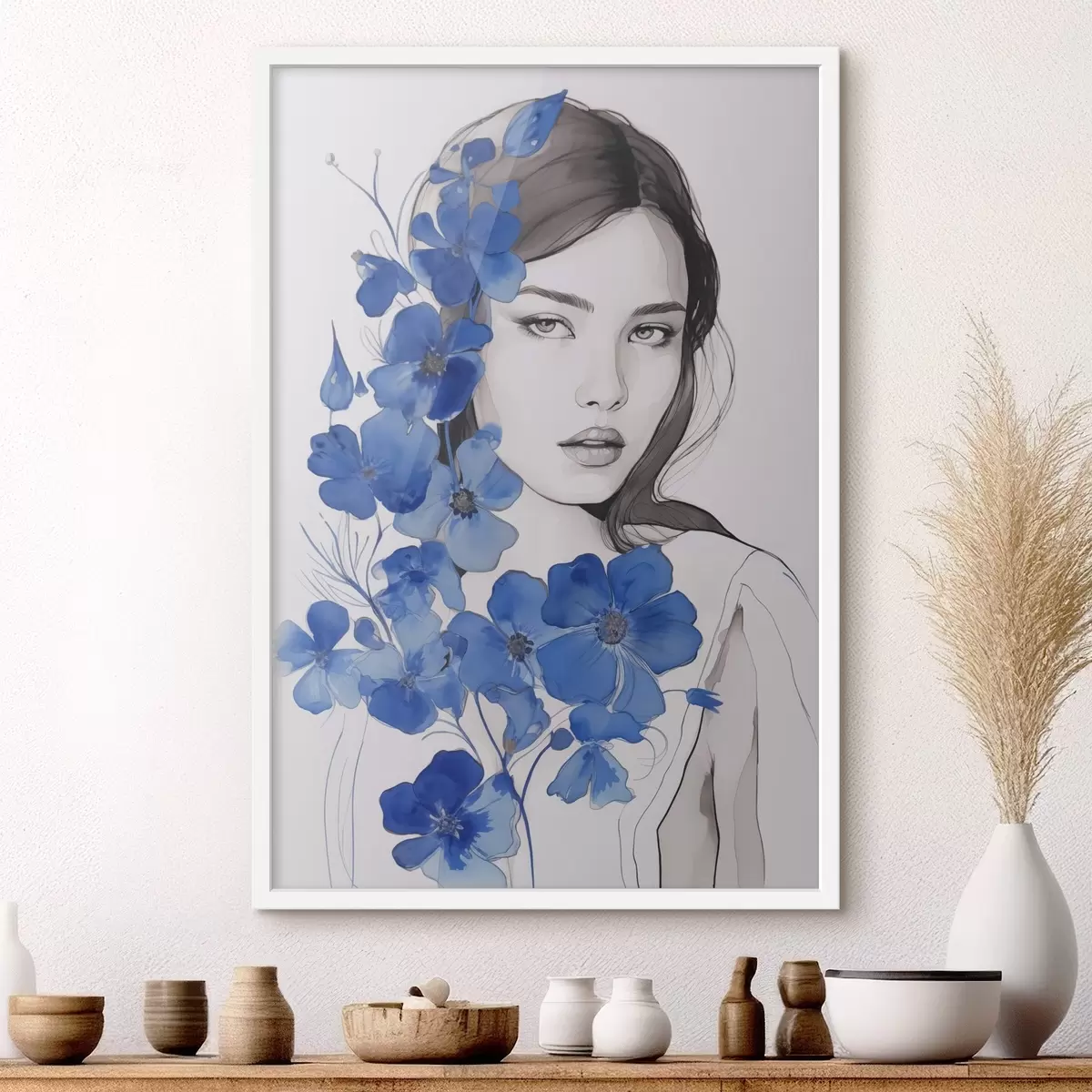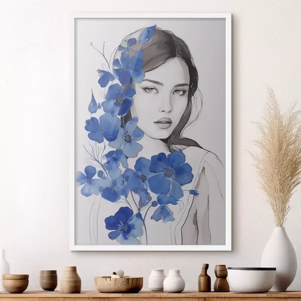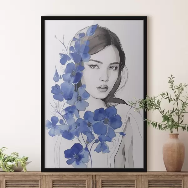 Plakat Tüdruk ja sinised lilled f45757