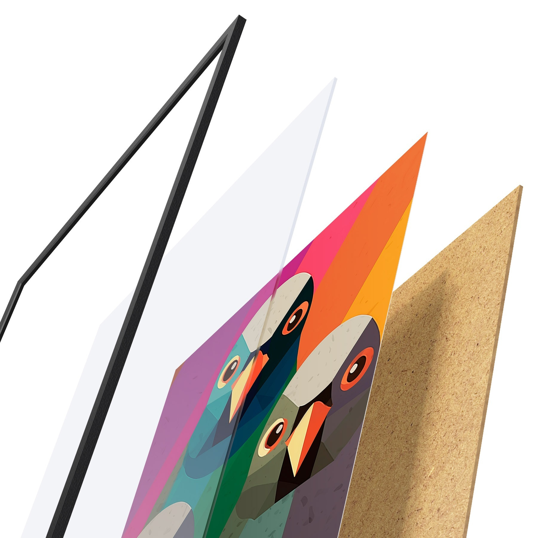 Plakat koosneb raamist, pleksiklaasist, trükitud pildist ja puitlaastplaadist alusplaadist. Tänu tagaküljel olevatele kinnitustele saab plakati kohe seinale riputada.