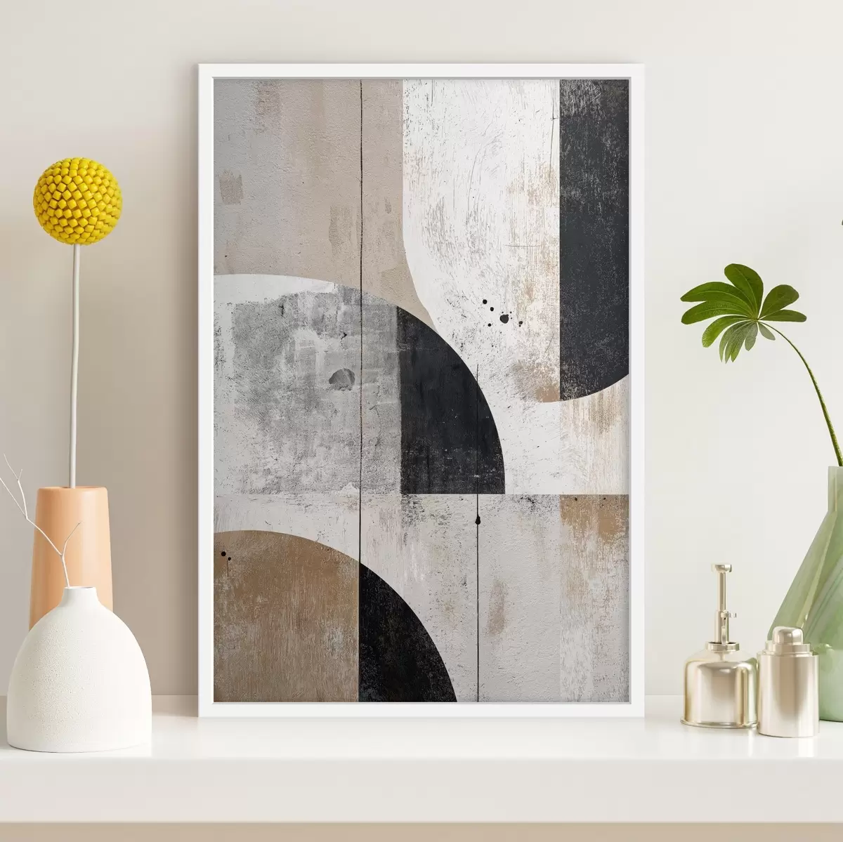 Plakat Geomeetrilised kujundid halli ja beeži toonides f45812
