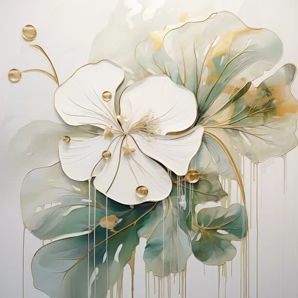 Poster Valge õis kollakasoranžide detailide ja roheliste lehtedega Nr f45815