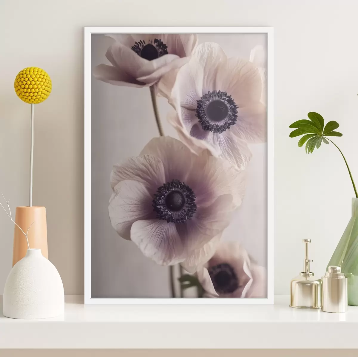 Poster Õrnad anemoonid tumeda keskosaga, pastelltoonides Nr f45875