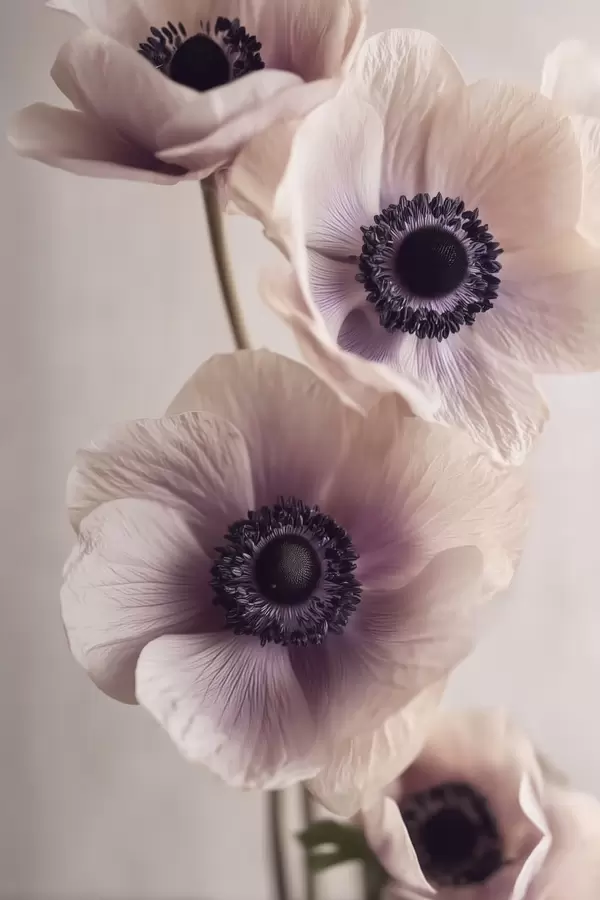 Poster Õrnad anemoonid tumeda keskosaga, pastelltoonides Nr f45875
