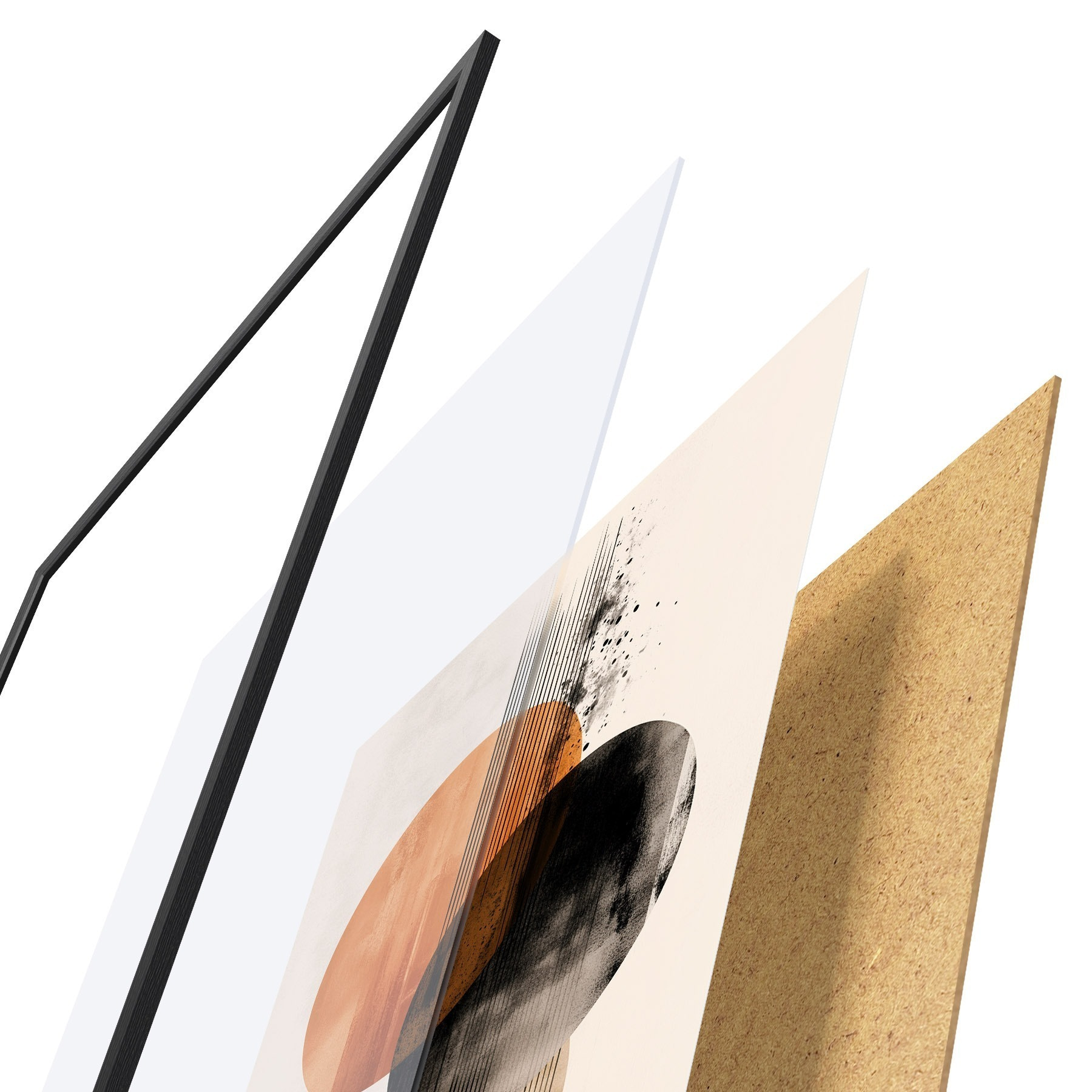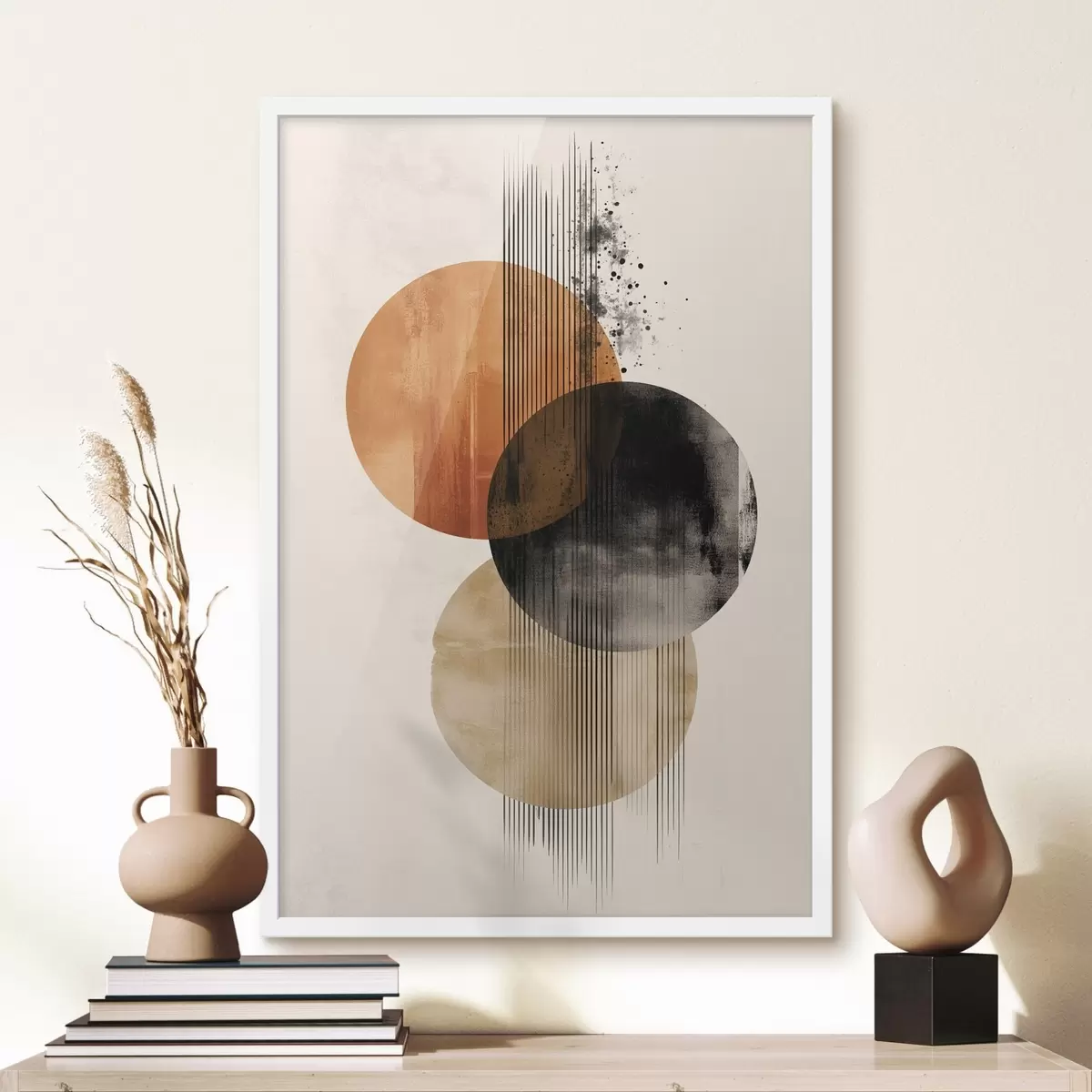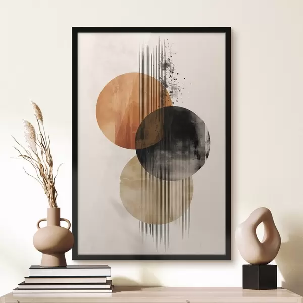 Poster Kolm tekstuuriga ringi joontega terrakota-musta värvipalettiga Nr f45885