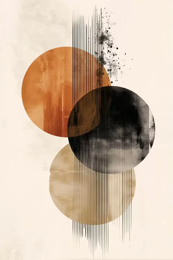 Poster Kolm tekstuuriga ringi joontega terrakota-musta värvipalettiga Nr f45885