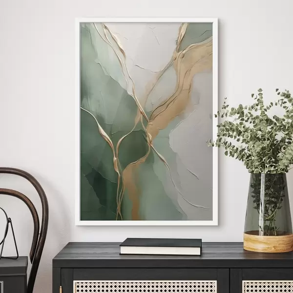 Plakat Smaragdroheline abstraktne kujundus kollaste joontega f45887
