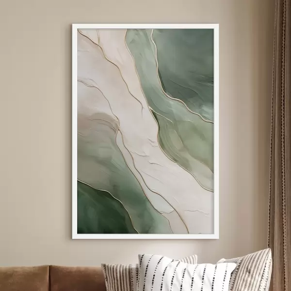 Poster Smaragdroheline abstraktne kujundus peenete kollaste joontega Nr f45888