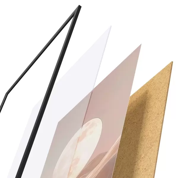 Plakat koosneb raamist, pleksiklaasist, trükitud pildist ja puitlaastplaadist alusplaadist. Tänu tagaküljel olevatele kinnitustele saab plakati kohe seinale riputada.