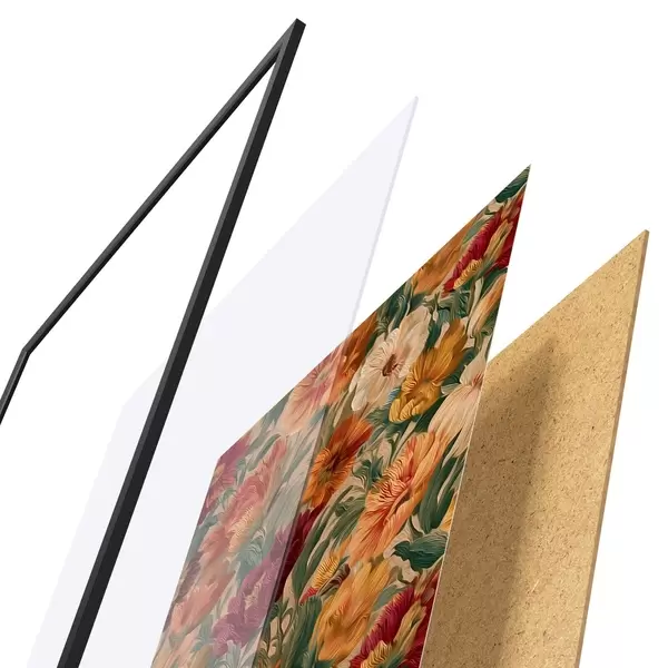 Plakat koosneb raamist, pleksiklaasist, trükitud pildist ja puitlaastplaadist alusplaadist. Tänu tagaküljel olevatele kinnitustele saab plakati kohe seinale riputada.