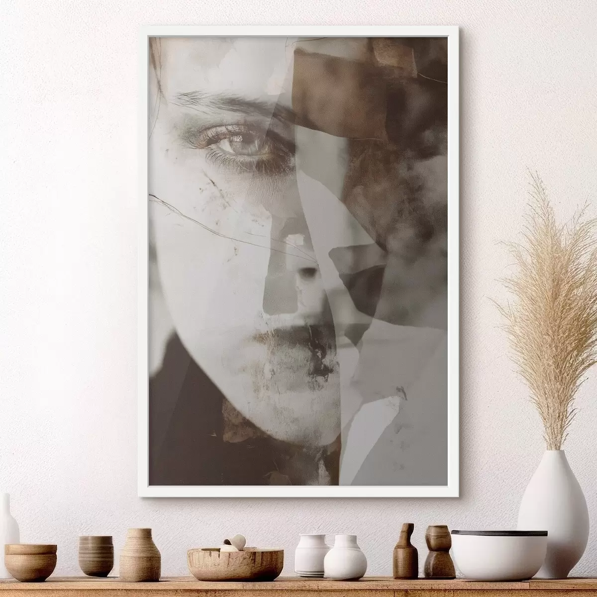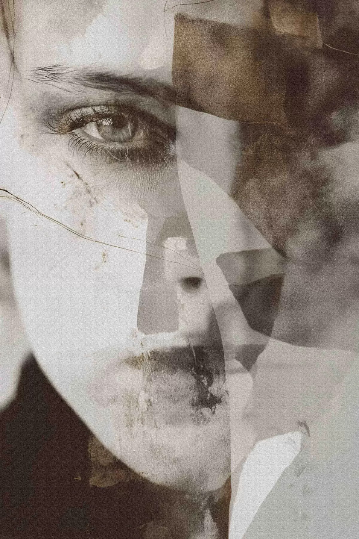 Plakat Abstraktne portree seepias, tekstuurid ja plekid f45897