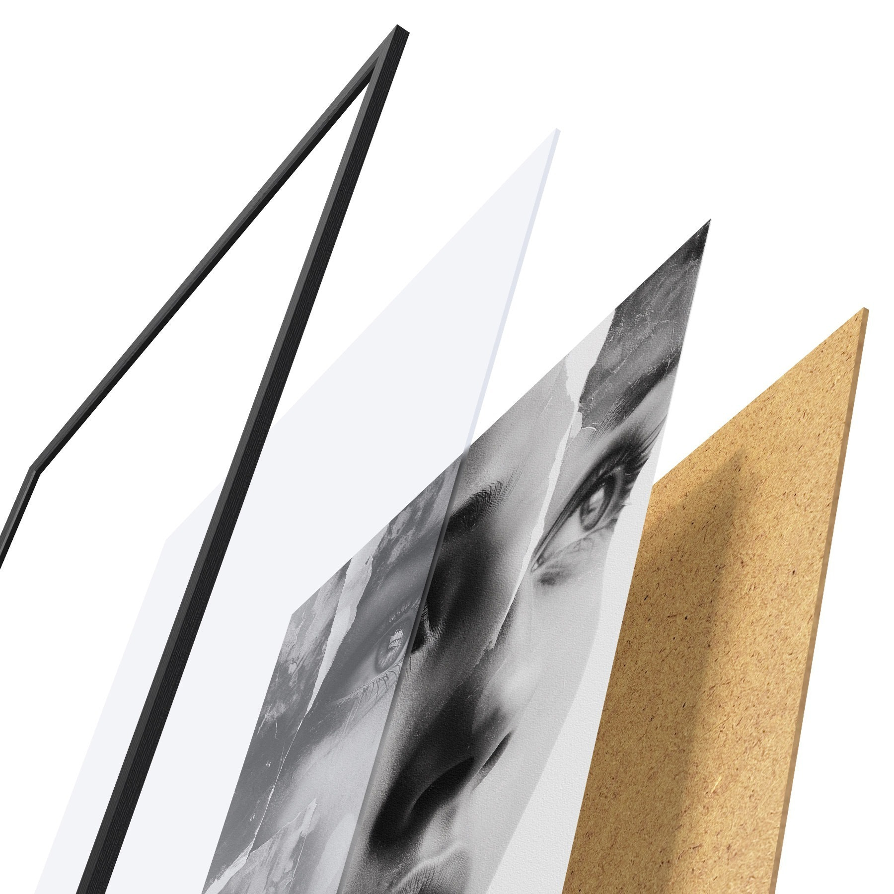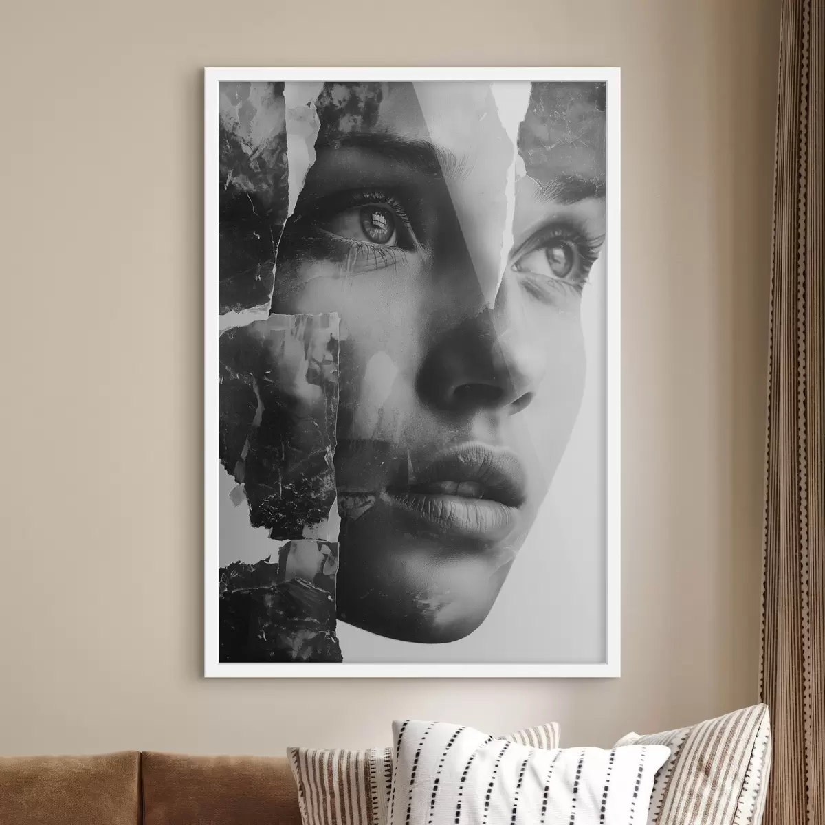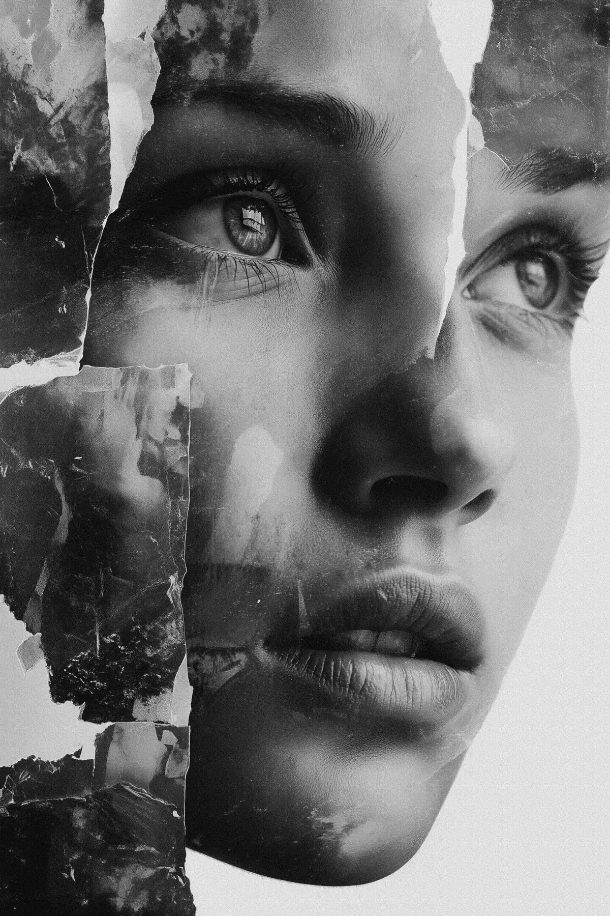 Poster Must-valge kollaažportree rebitud tekstuuriga kihtidega Nr f45898