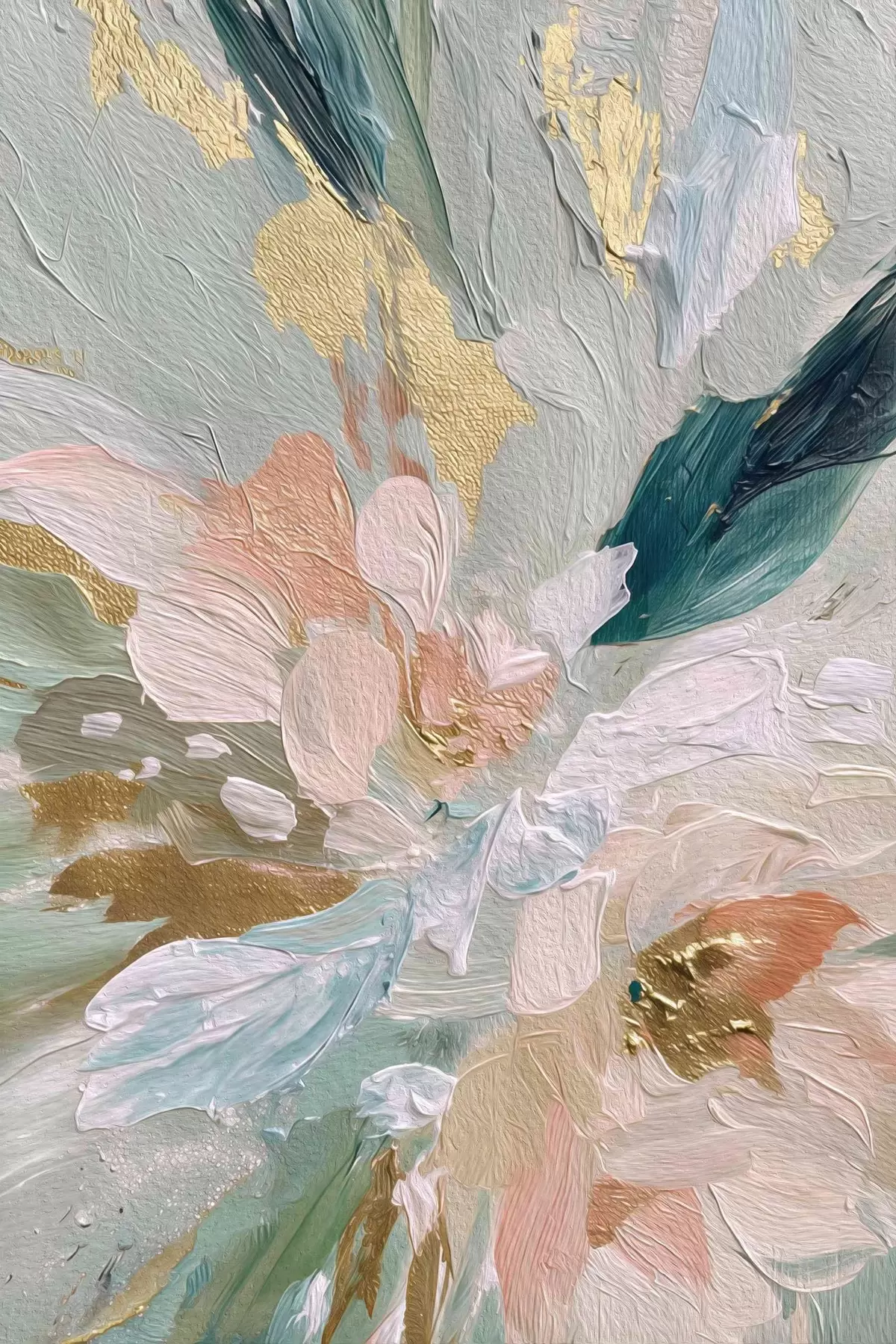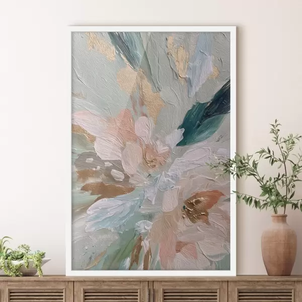 Plakat Pastelsed lillelised jooned kollaste täppidega f45899