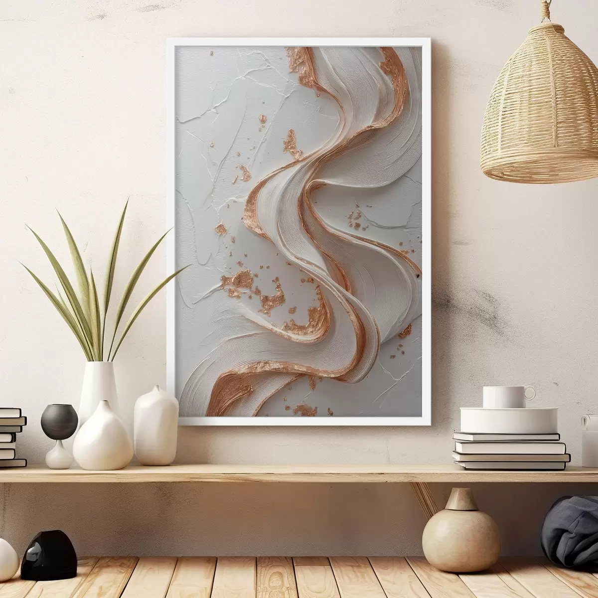 Plakat Valge-kollased tekstuuriga jooned metalliliste aksentidega f45906