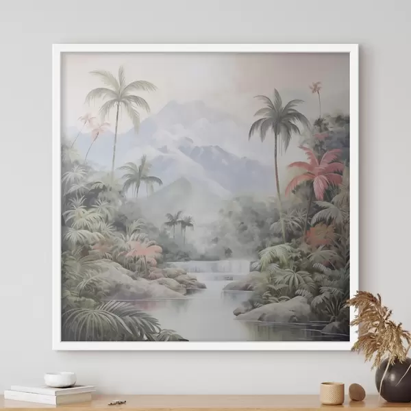 Poster Jõgi troopilises metsas mägedest ees Nr f45913