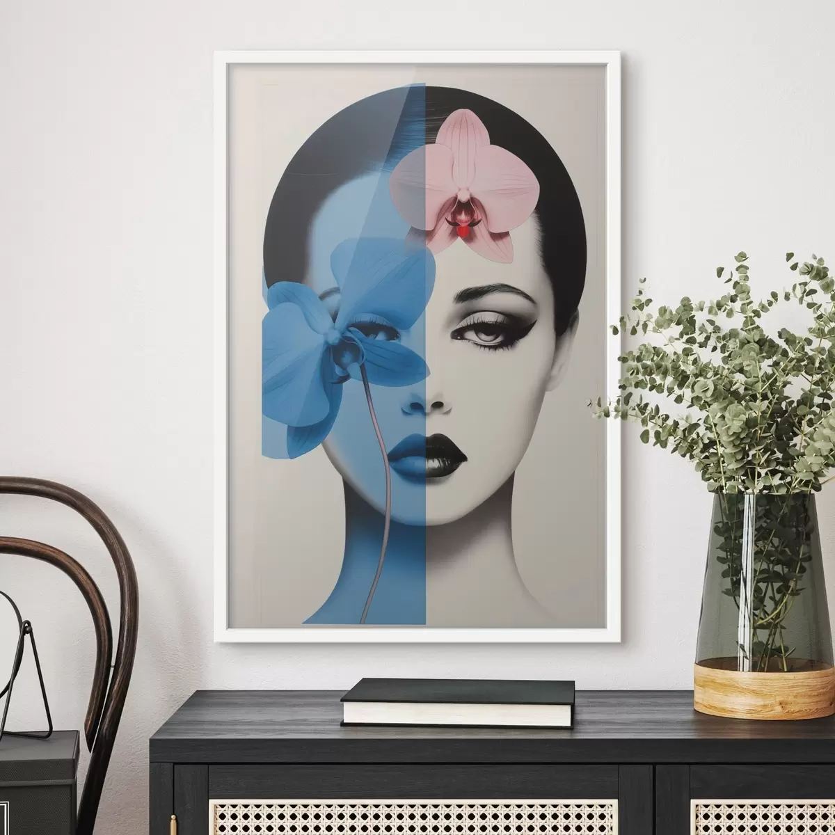 Plakat Abstraktne kunstiportree naisest orhideedega f45924