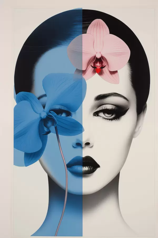 Plakat Abstraktne kunstiportree naisest orhideedega f45924