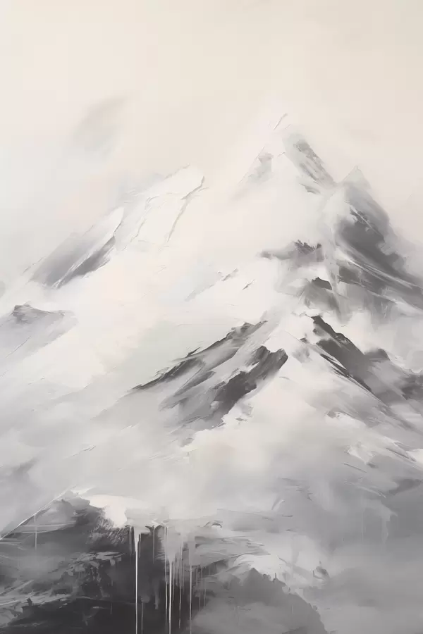 Poster Lumised mäetipud hallide varjudega, hall taevas, pintslitõmbed, tekstuurne, minimalistlik Nr f45932