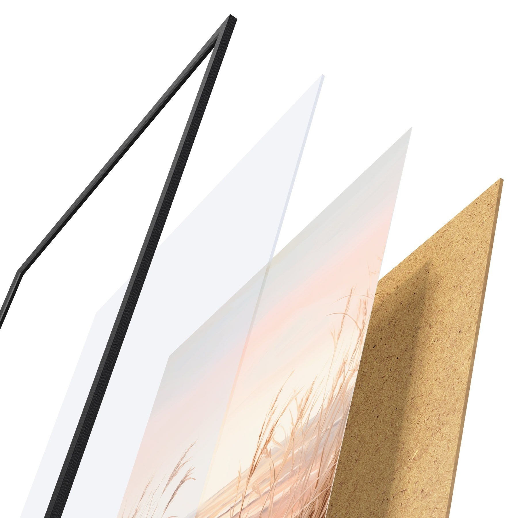 Plakat koosneb raamist, pleksiklaasist, trükitud pildist ja puitlaastplaadist alusplaadist. Tänu tagaküljel olevatele kinnitustele saab plakati kohe seinale riputada.