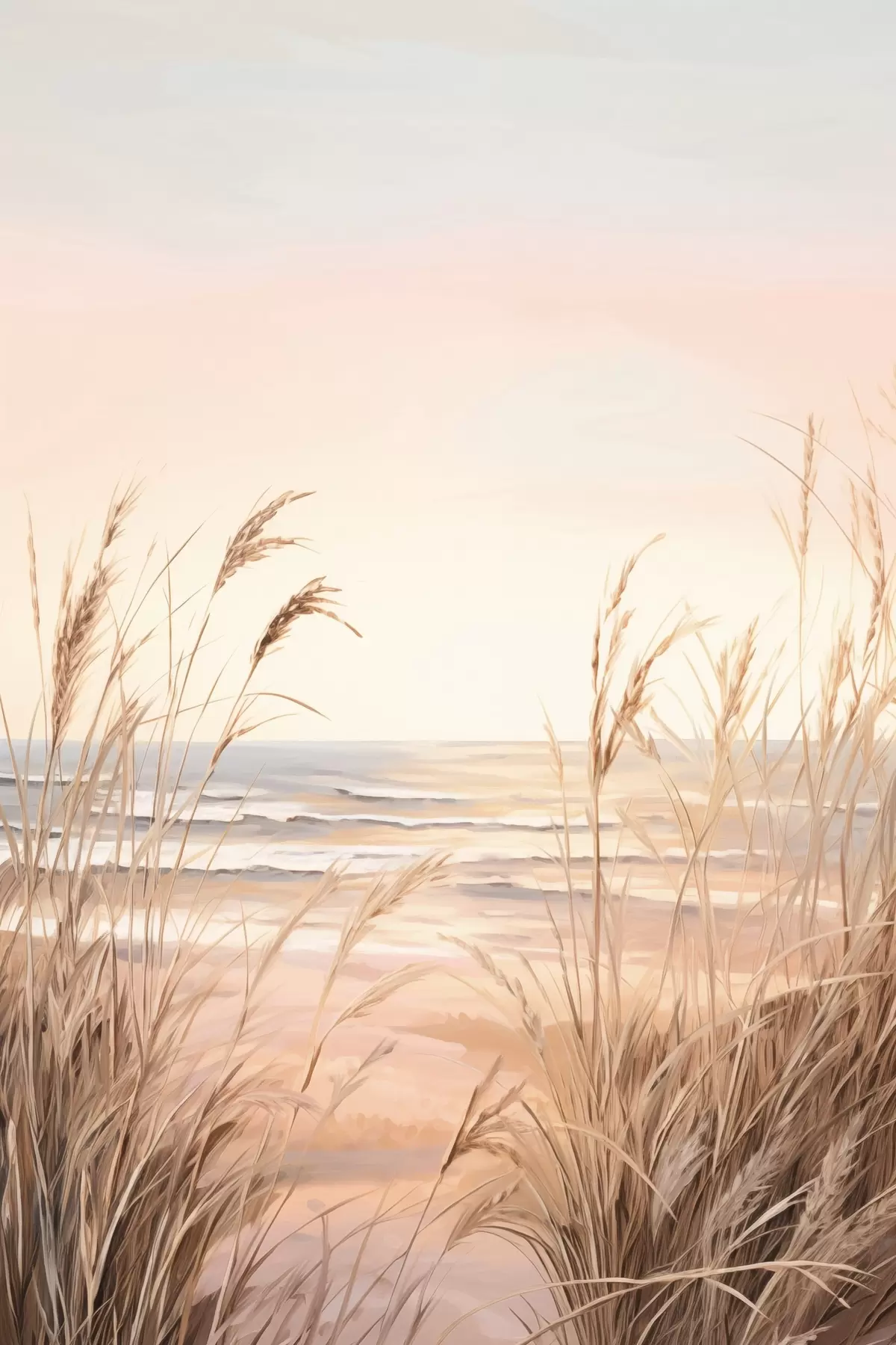 Poster Pastelloranžide toonidega pampasrohi, heleroosa taevas, rahulik maastik Nr f45935