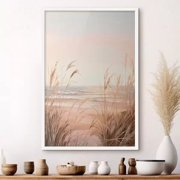Plakat Pastelloranžide toonidega pampasrohi, heleroosa taevas, rahulik maastik f45935