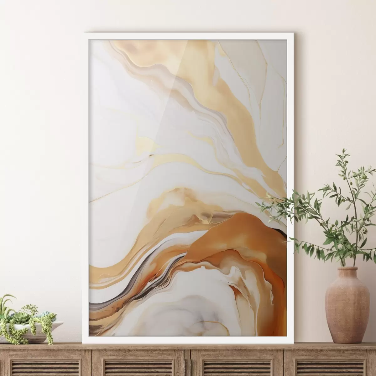 Plakat Abstraktne maal, mis imiteerib voolavaid kujundeid valge, oranži ja pruuni toonides, minimalistlik f45938