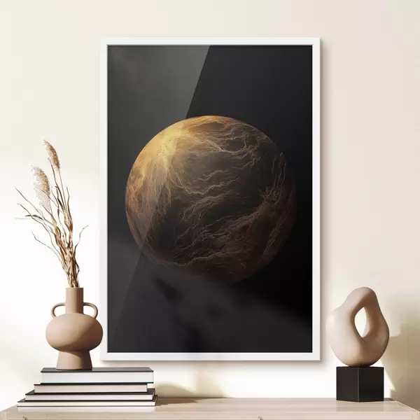 Poster Abstraktne planeet oranžide veenidega mustal kosmosetausta taustal, modernne minimalistlik kunst Nr f45943