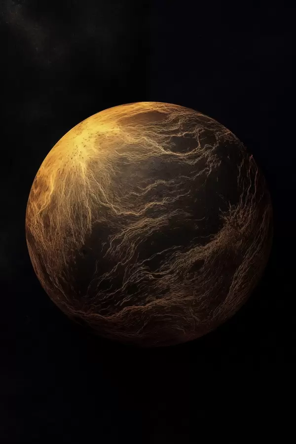 Poster Abstraktne planeet oranžide veenidega mustal kosmosetausta taustal, modernne minimalistlik kunst Nr f45943