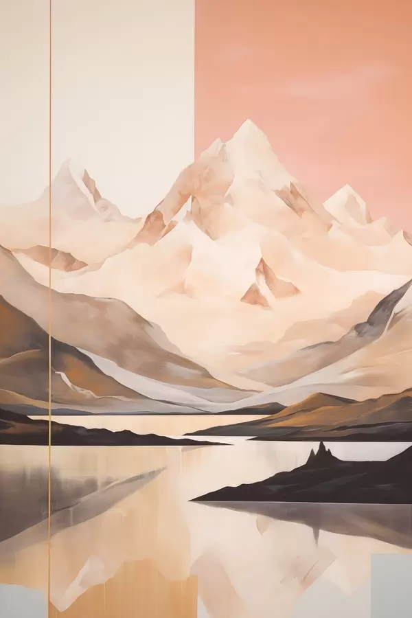 Plakat Abstraktne maastik mägedega ja järvega, pastelltoonid, minimalistlik stiil f45949