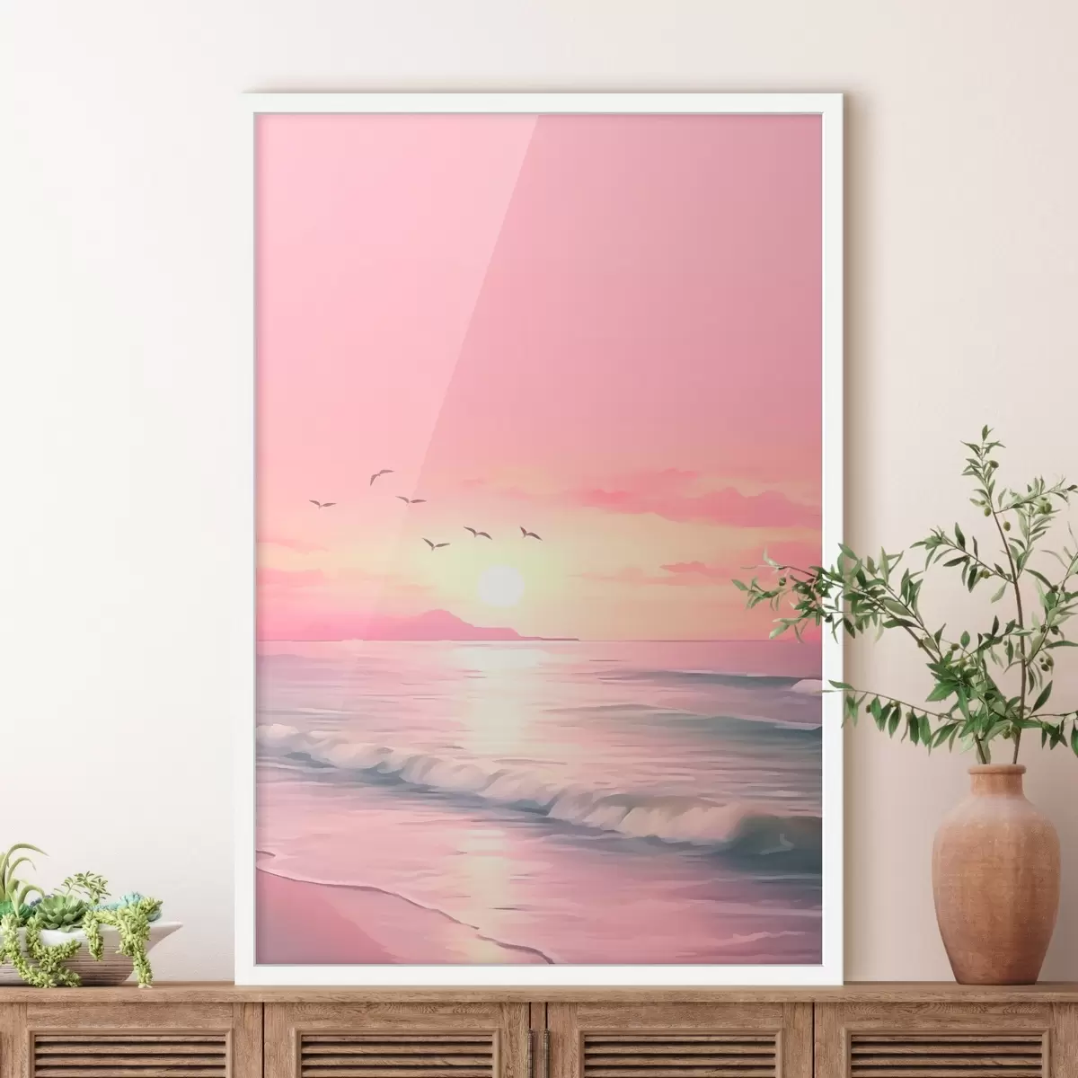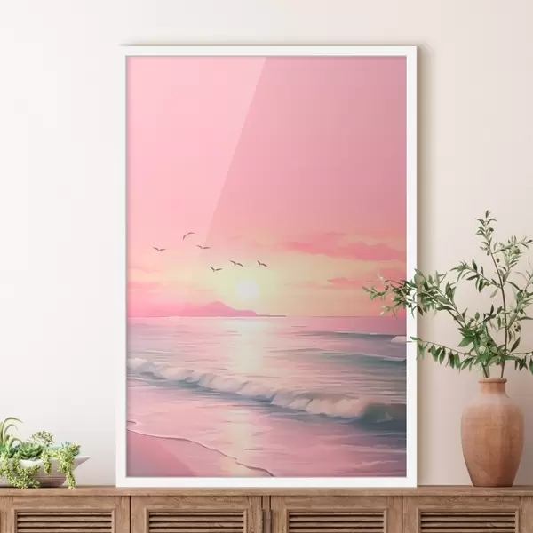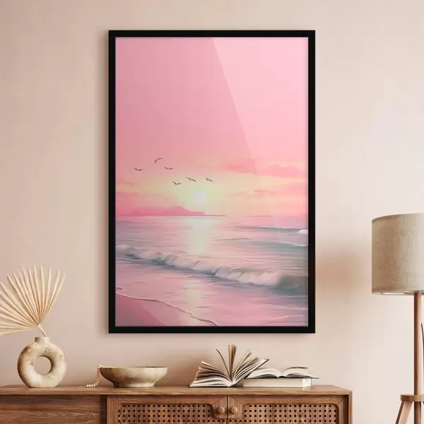 Poster Roosa päikeseloojang mere kohal Nr f45955