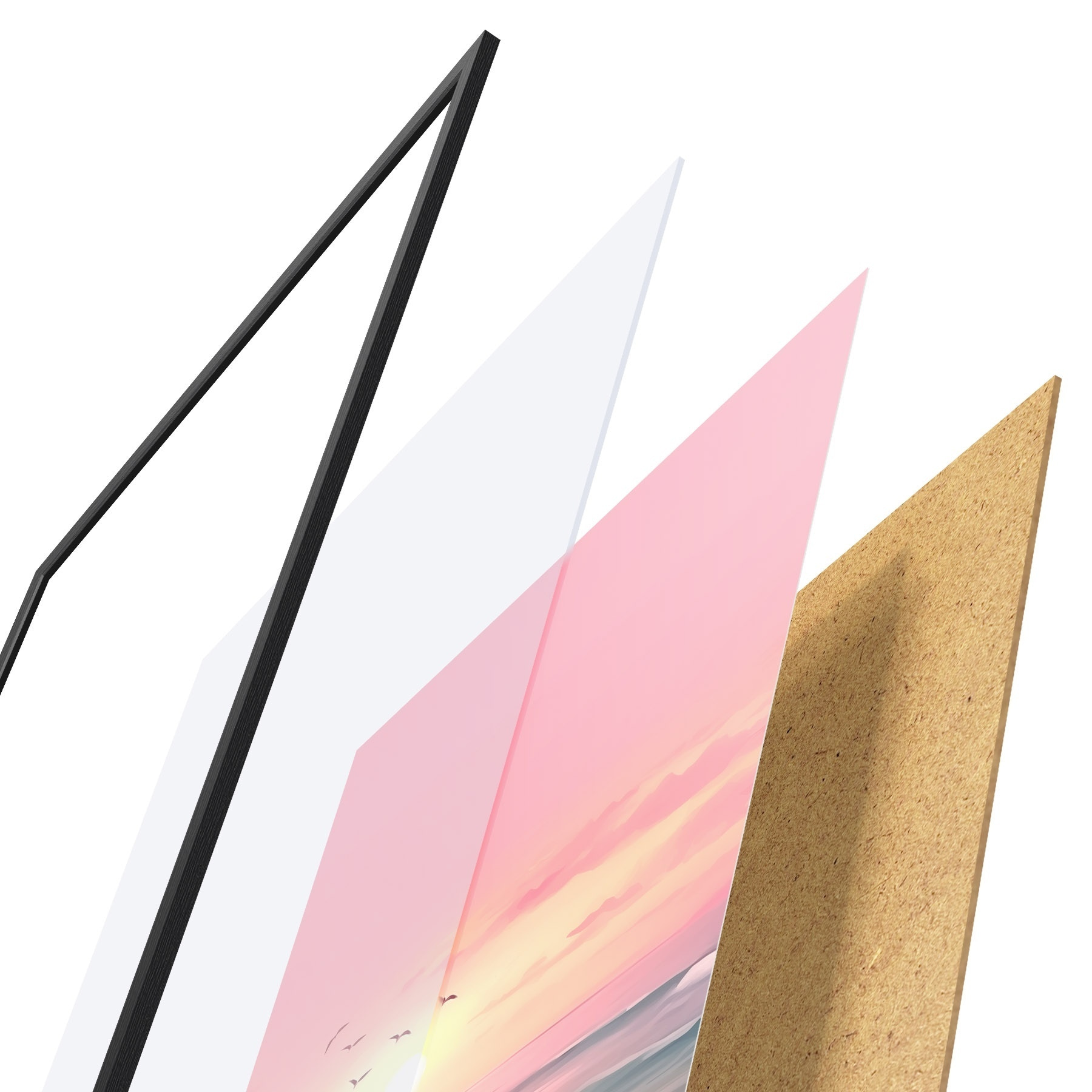 Plakat koosneb raamist, pleksiklaasist, trükitud pildist ja puitlaastplaadist alusplaadist. Tänu tagaküljel olevatele kinnitustele saab plakati kohe seinale riputada.