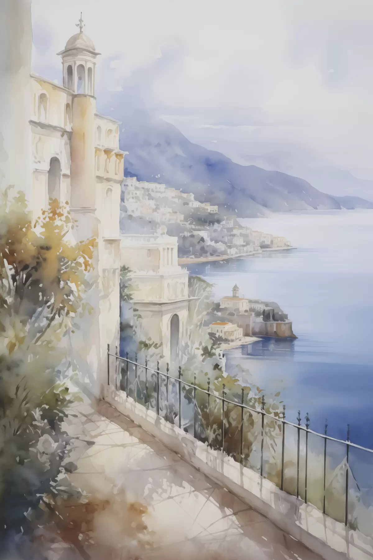 Plakat Linnale lähedal asuv laht akvarellijoonis f45979
