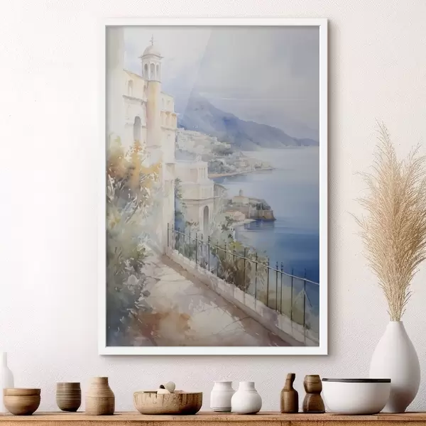 Poster Linnale lähedal asuv laht akvarellijoonis Nr f45979