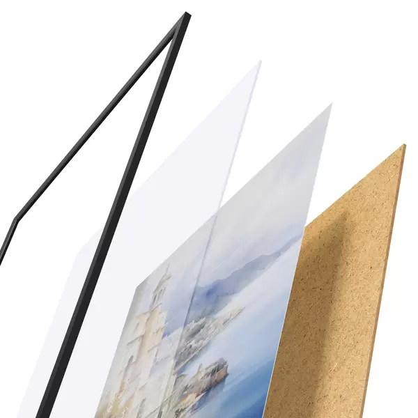 Plakat koosneb raamist, pleksiklaasist, trükitud pildist ja puitlaastplaadist alusplaadist. Tänu tagaküljel olevatele kinnitustele saab plakati kohe seinale riputada.