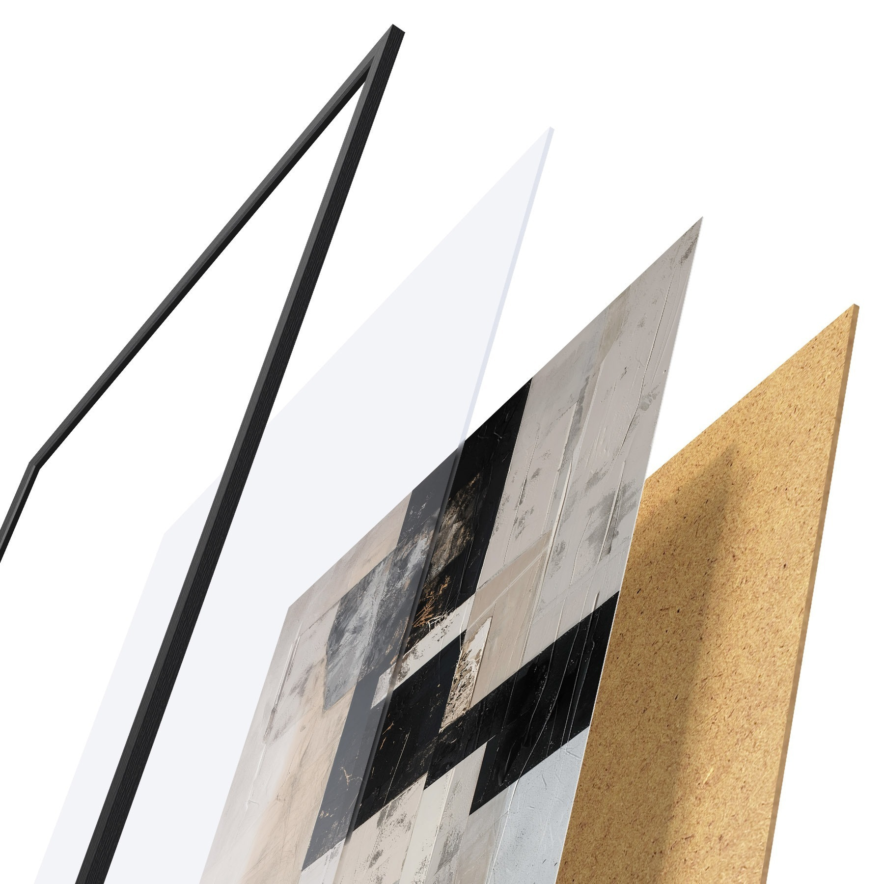 Plakat koosneb raamist, pleksiklaasist, trükitud pildist ja puitlaastplaadist alusplaadist. Tänu tagaküljel olevatele kinnitustele saab plakati kohe seinale riputada.