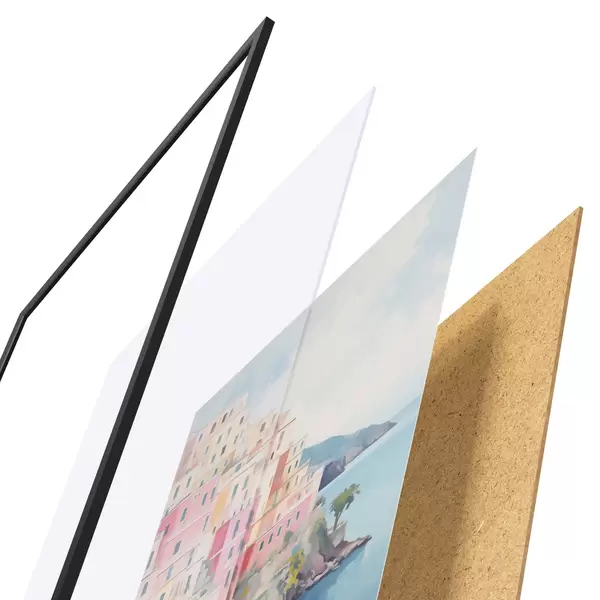 Plakat koosneb raamist, pleksiklaasist, trükitud pildist ja puitlaastplaadist alusplaadist. Tänu tagaküljel olevatele kinnitustele saab plakati kohe seinale riputada.