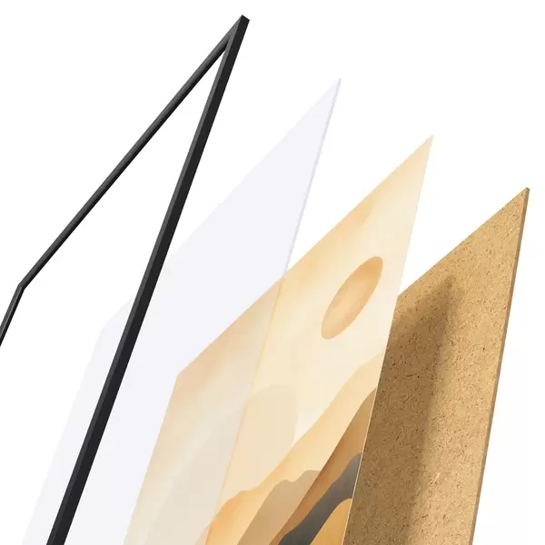 Plakat koosneb raamist, pleksiklaasist, trükitud pildist ja puitlaastplaadist alusplaadist. Tänu tagaküljel olevatele kinnitustele saab plakati kohe seinale riputada.