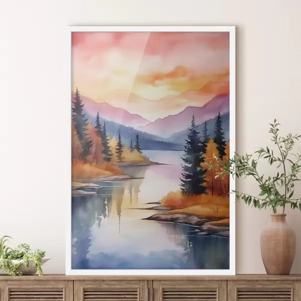 Plakat Sügisene maastik järve ääres heleda taevaga f46155