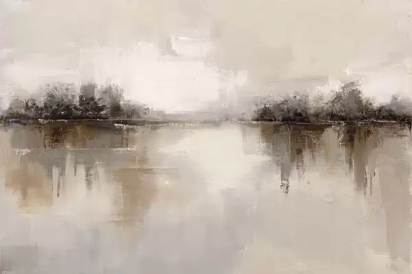 Poster Pehme maastik järvega soojades beež-hallides toonides Nr f46158