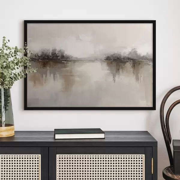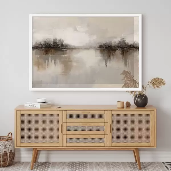 Plakat Pehme maastik järvega soojades beež-hallides toonides f46158
