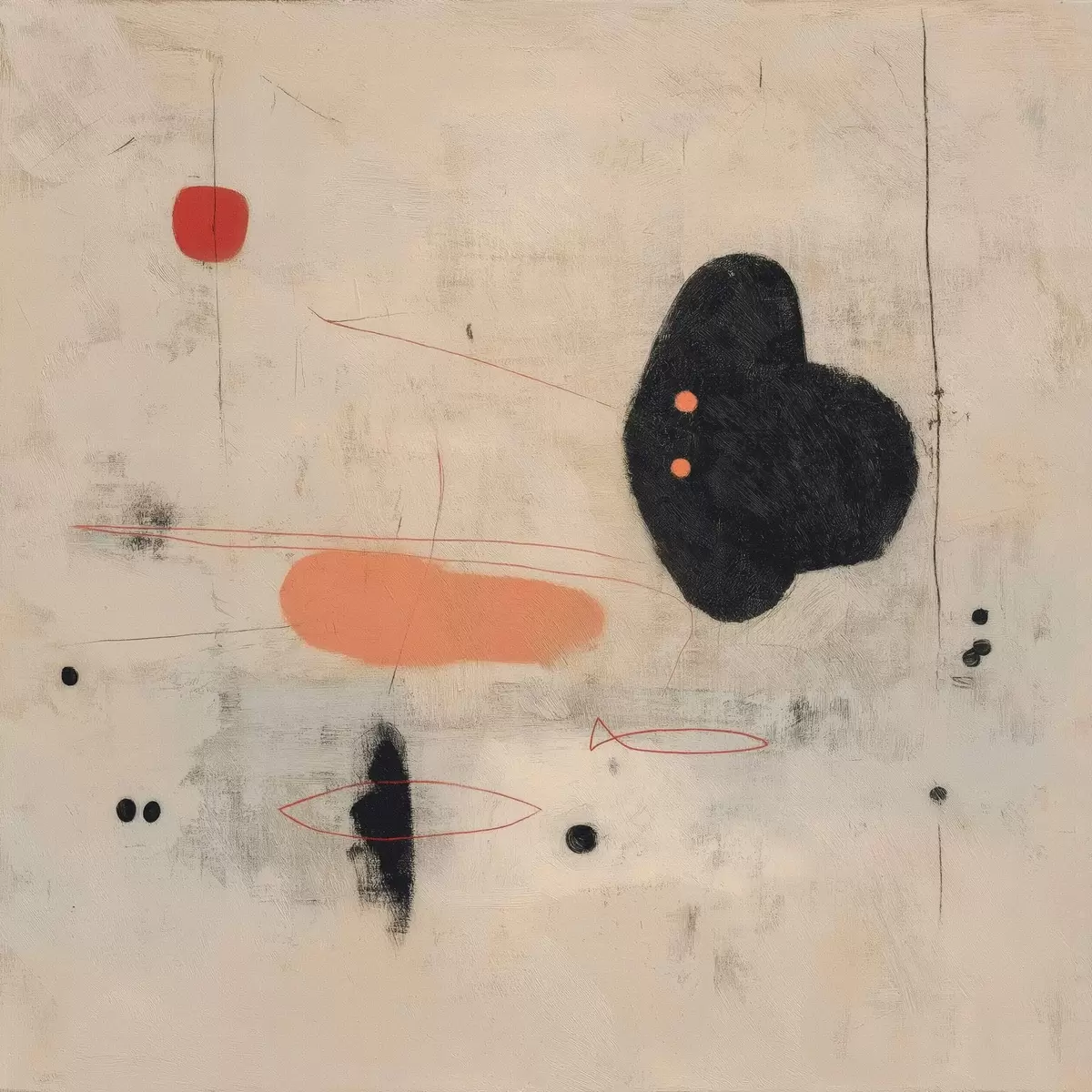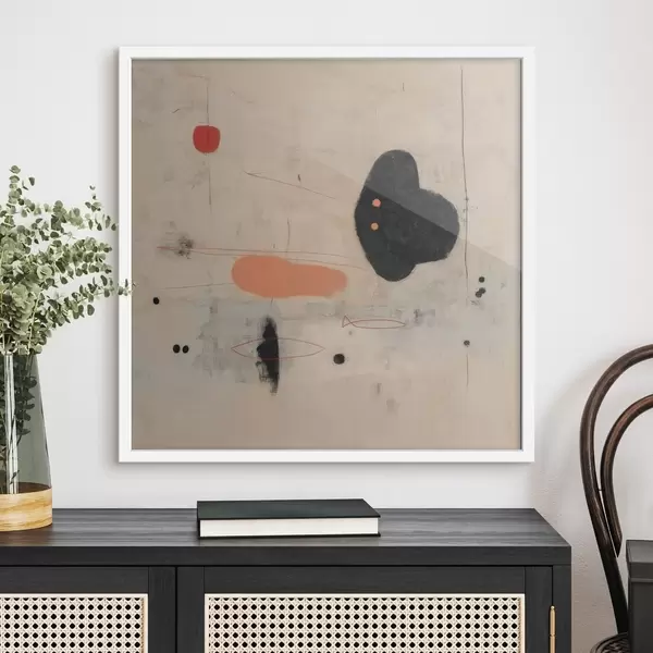Plakat Minimalistlik abstraktne joonistus mustade ja korallikarva aksentidega f46159